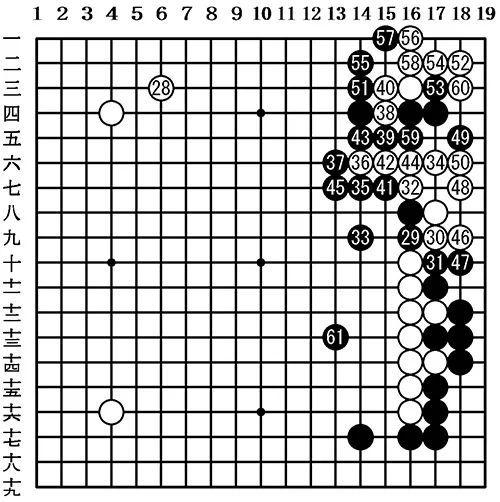 白58扳之后,黑59选择断想要就此定型。下到这里一直都是黑棋顺风顺水的局面,但是这个时候突然出现了意外。