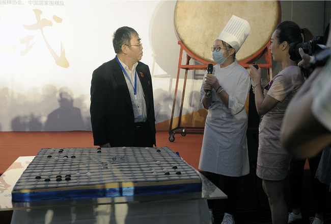 现场聂老频频给菲菲比大拇指,哽咽着感叹道:真是太令人意外了,非常感动。而后,聂云菲为父亲聂卫平送上鲜花,并与大哥孔令文一起,握着父亲的手,一起切蛋糕,共度这个令人难忘的生日。而蛋糕上是聂卫平围棋生涯中最令他难忘的一局棋——第一届中日围棋擂台赛倒数第三盘,聂老11连胜的第一局,聂卫平胜小林光一。