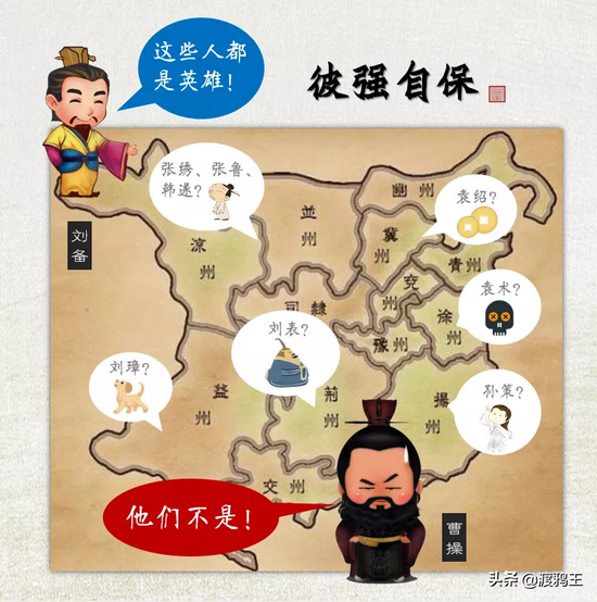 但是,占据“先手“的曹操,不但一一否定了刘备的回答。。。。。