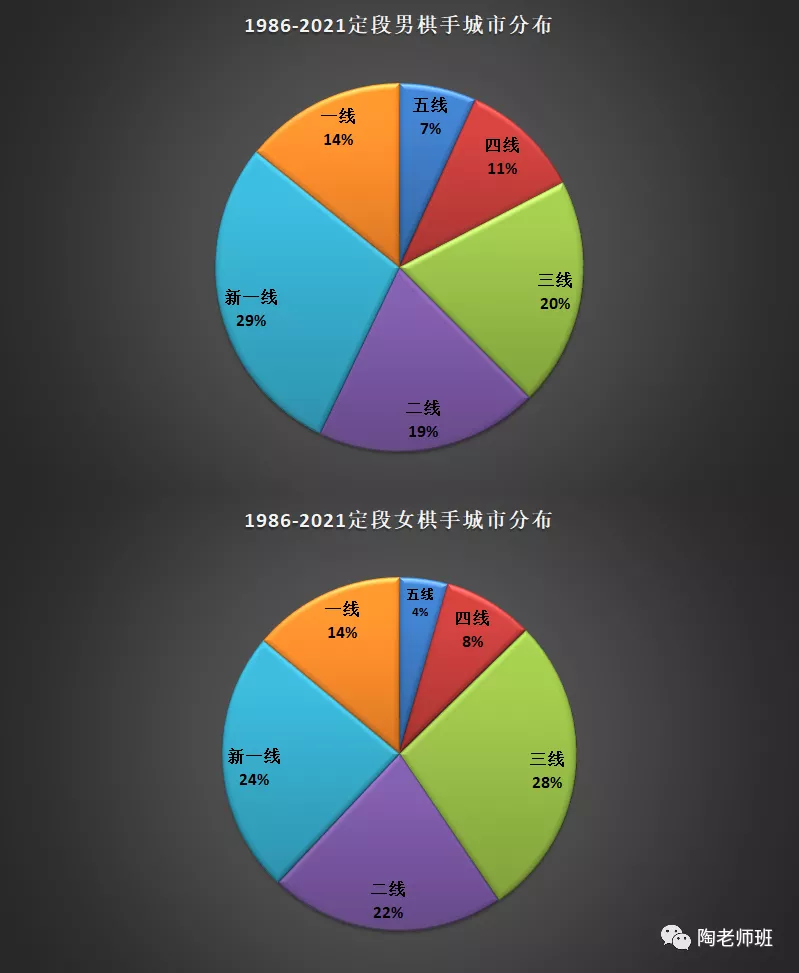 男女棋手分布对比图,女棋手中型城市比例高。