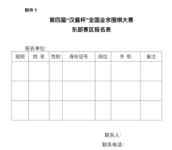 附件:第四届“汉酱杯”全国业余围棋大赛东部赛区报名表