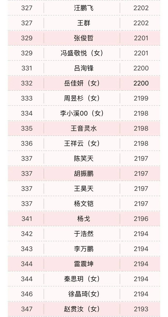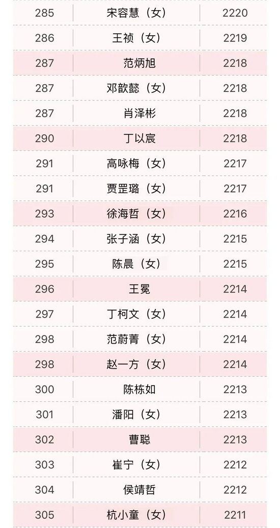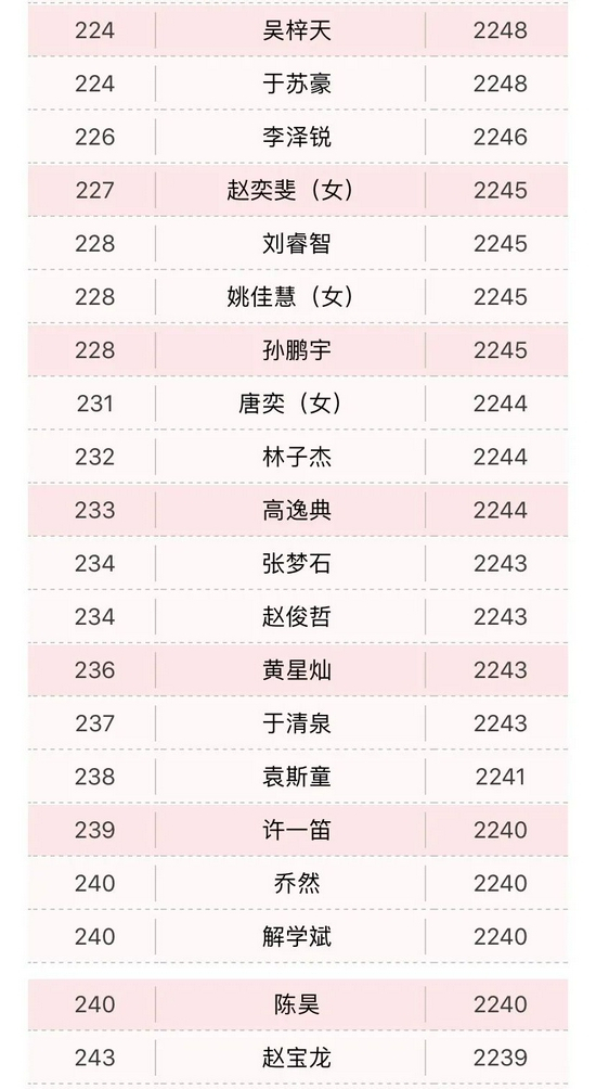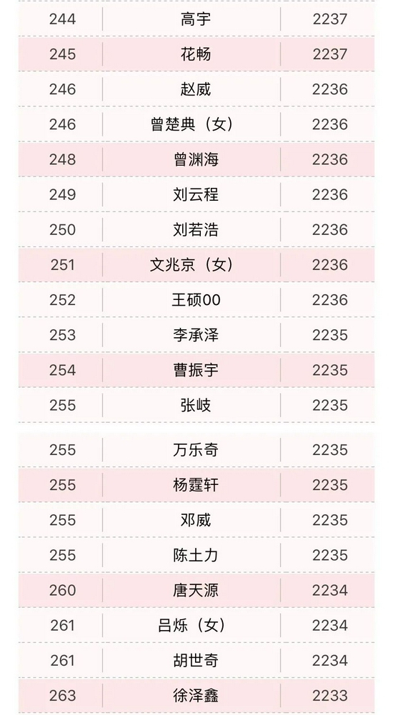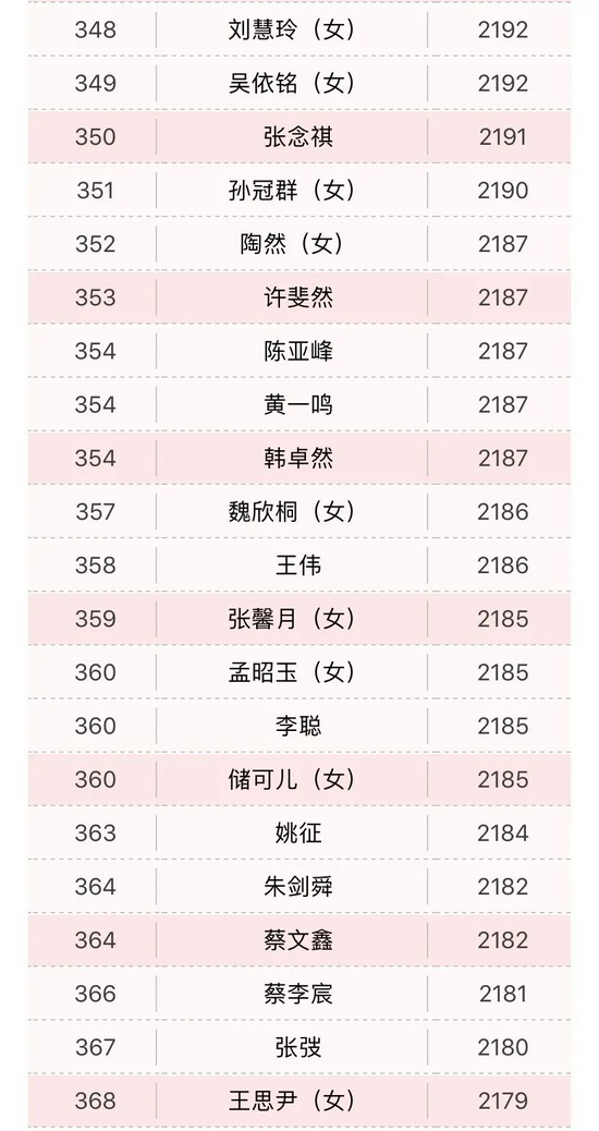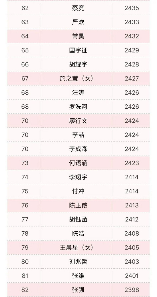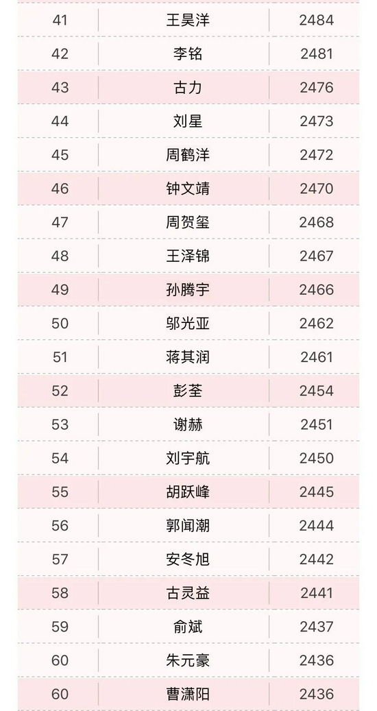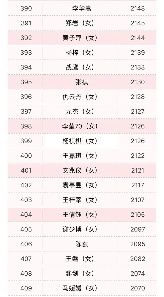 未列入名册的有等级分棋手(不活跃棋手)名单:
