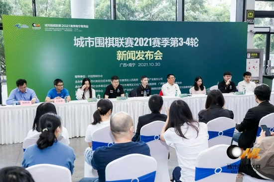 10月30日下午,城围联2021赛季第3-4轮新闻发布会在南宁国际会展中心举行,发布会由城市围棋联盟秘书长胡煜清主持,华智公司竞赛部部长王延强向到场的媒体记者和嘉宾介绍赛况。