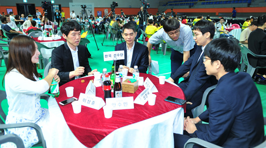 2015年团体赛减为每队三人,中国队柁嘉熹、芈昱廷、范廷钰总比分4比5惜败给韩国队李世石、崔哲瀚、朴廷桓。混双赛再次出现刘小光/宋容慧、曹薰铉/李映周、结城聪/吉田美香三队2胜1负并列第一的奇景,第四名为王立诚/苏圣芳。
