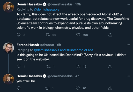 11 月 4 日,哈萨比斯宣布了 Alphabet 新公司 Isomorphic Labs 的成立。