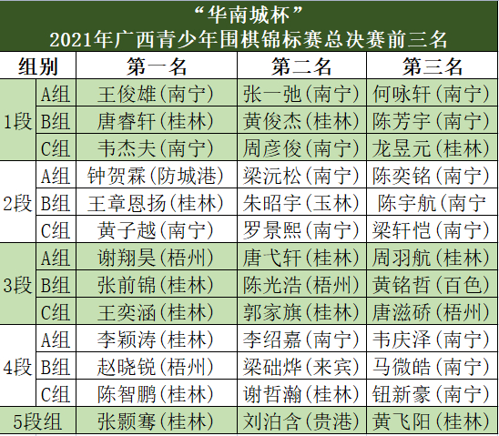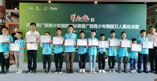11月7日下午,“华南城杯”2021年广西青少年围棋锦标赛暨广西青少年围棋万人赛总决赛第二阶段在南宁华南城落下帷幕。桂林队获得12项冠军,水平最高的5段组桂林棋手张颢骞称雄。