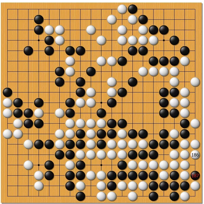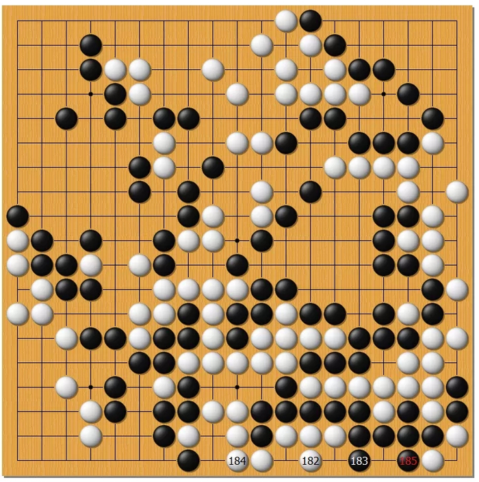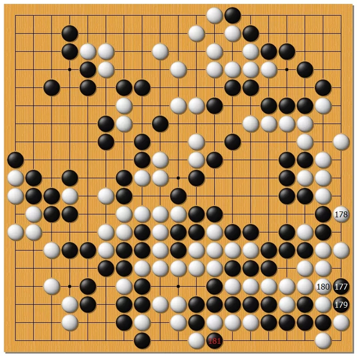 但是黑179/181连续的先手之后,答案逐渐浮出水面。
