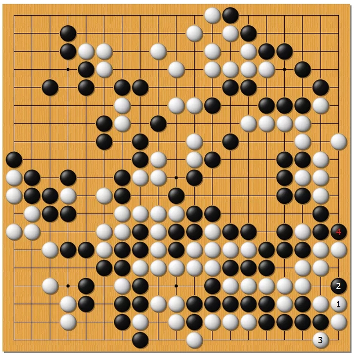 当前局面已步入收官,168在上方提劫是此时的焦点,接下来轮到黑棋找劫。