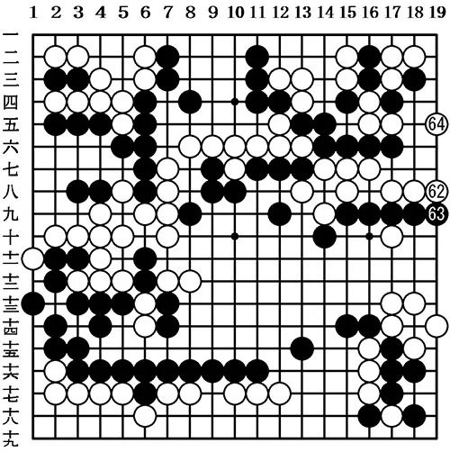 一力辽的黑63也没有用任何时间,这样的话白棋只有和右上角形成联络。不过怎么联络?我是看不清的。