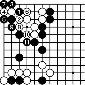 左上角黑3弃子是井山裕太的盲点,白4吃掉黑棋之后,黑5和黑7就形成了先手,整形之后回到黑11,这个时候白棋一只眼也没有。