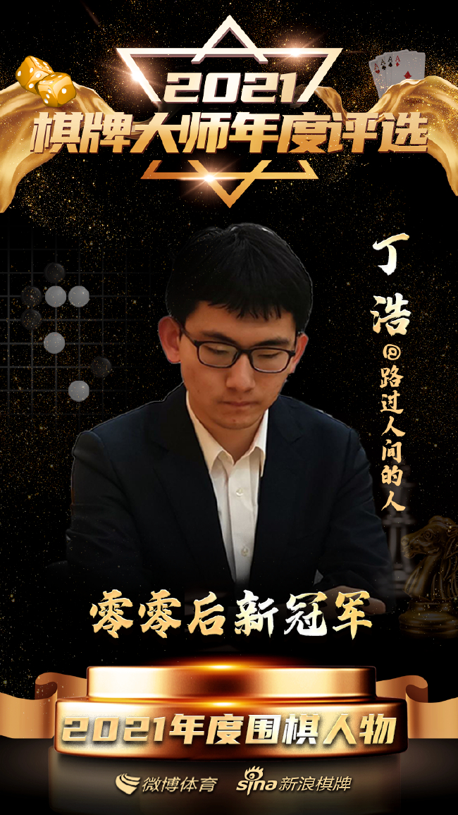 零零后的丁浩在今年的国内赛场上收获颇丰,九月上大学后连夺四个冠军:野狐人气争霸赛、倡棋杯、国手战、大棋圣战。丁浩在微博上的昵称是“路过人间的人”,经常会分享一些人生感悟,字里行间有种出尘的气质。