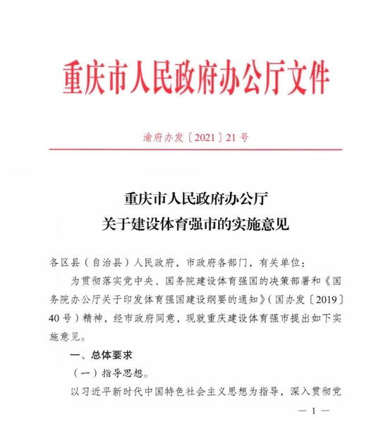 2月22日,《重庆市人民政府办公厅关于建设体育强市的实施意见》正式公布,为重庆体育确立战略目标和发展步骤。