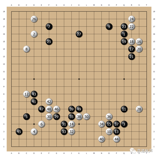 白28、30又在右边腾挪,柯洁下得过于潇洒了。黑31冷静,白棋有点自寻烦恼。