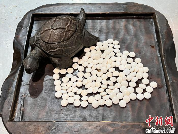 成都海关从“乌龟”中查获濒危贝类砗磲制品围棋子。 成都海关供图