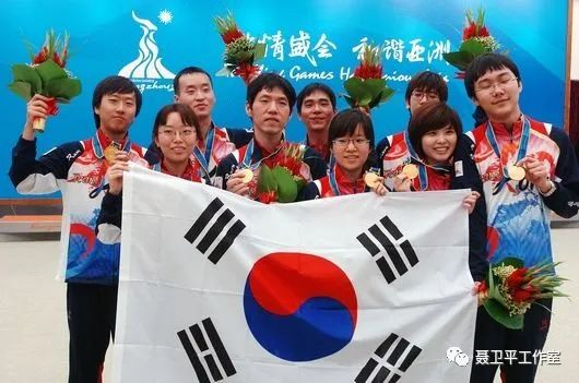 在2010年广州亚运会上,出乎意料的是韩国包揽了3枚金牌。李昌镐和李世乭出战,19岁的朴廷桓被免除了兵役。朴廷桓和李瑟娥参加混双赛,一举成为双冠王。