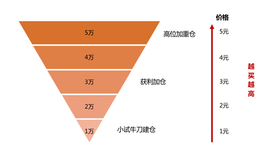 那在这种时候一种常见的进场方式,就是随着市场上涨越买越多,也就是“倒金字塔式”投资。