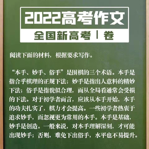 2022年全国新高考Ⅰ卷,深圳考生作文谈围棋“本手、俗手、妙手”。高考作文题,继2021年谈“体育之研究”,体育再次“C位”出道,代表了某种前进的方向。