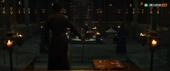 如果说以上围棋内容在影视剧中还算屡见不鲜,那么全剧第1集开头,陈晓饰演的顾千帆在皇城司问案时以背景出现的棋盘棋子,就要令人惊讶了。固然远景镜头较为模糊,从盘面形状中也可看出,摆放的是1670年(日本宽文十年)御城棋,二世安井算哲执黑与本因坊道策破天荒的“初手天元之局”。