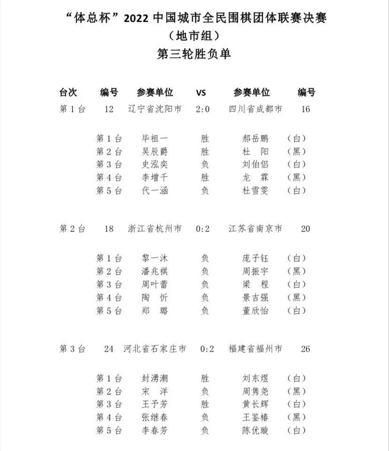 体总杯中国城市全民围棋团体联赛地市组决赛第三轮