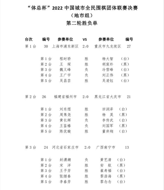 第二轮赛果如下: