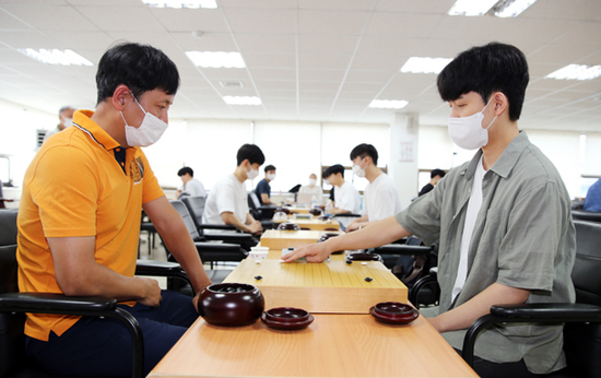 赛场上金承俊(左)并非一个人在战斗,朴廷桓预选半决赛击败的金贤彬就是他的儿子。当然,金承俊淘汰的金多瑛也是著名的“姐妹棋手”。