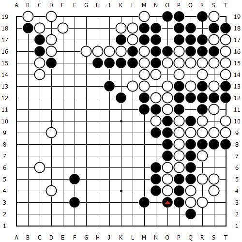 而由于黑棋外围潜力巨大,黑棋甚至有可能放弃T12这一块黑棋,通过D5、E9、R2等处的劫材获得补偿,以争胜负。