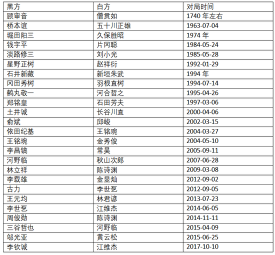 这张表中,王铭琬、李世乭、河野临、江维杰等棋手出现了两次,与四劫循环有特别的缘分。