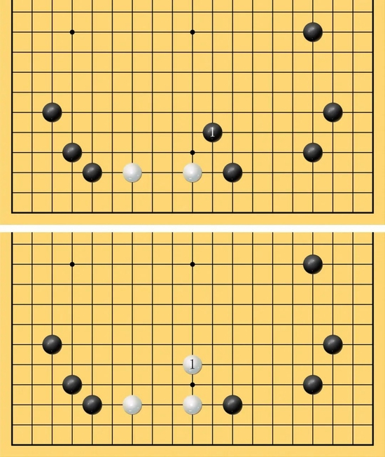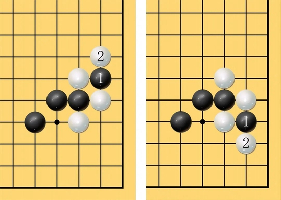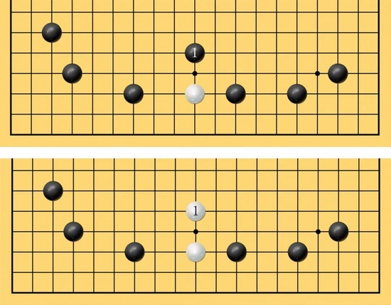 9、棋逢断处打。实用格言,指同一棋形,有两个二路上的断点时,对方断哪边,一定要打吃哪边,当然意味着舍弃另一边。