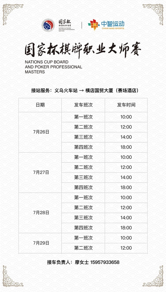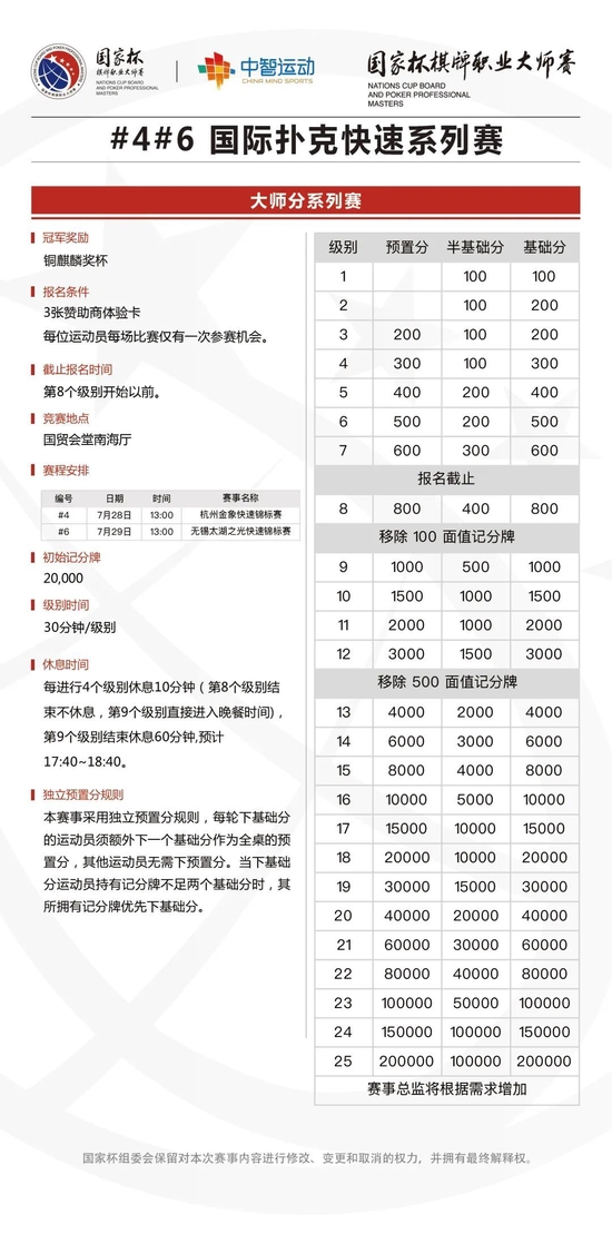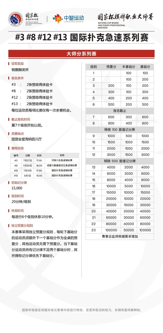赛事信息:国家杯棋牌职业大师赛横店站参赛指南