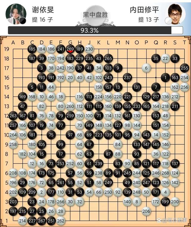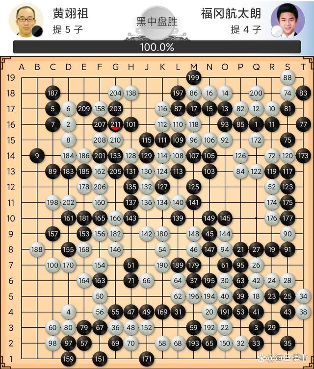 在第47期棋圣战循环圈C组的比赛中,福冈航太朗执白不敌黄翊祖。