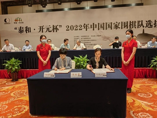 9月4日,“泰和·开元杯”2022年中国国家围棋队选拔赛在浙江天台开元名都大酒店开幕。中国围棋协会主席林建超、中共天台县委书记杨玲玲致辞,并一起为“中国国家围棋队训练基地(天台)”揭牌。中国围棋协会副主席兼国家围棋队领队华学明与天台县人民政府副县长陈东升分别代表双方签署合作协议。在今天结束的比赛中,王星昊、蔡竞、吕立言、吴依铭、高星、丁柯文等取得两连胜。
