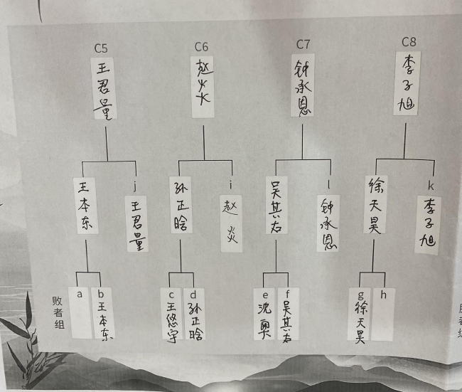 本赛首轮将于下午三点继续进行。上半区焦点战:胡煜清VS王舜博、曹汝旭VS李陆阳、唐崇哲VS赵望涛;下半区:周振宇VS钟承恩、马天放VS赵鹤、何鑫VS李梦石。