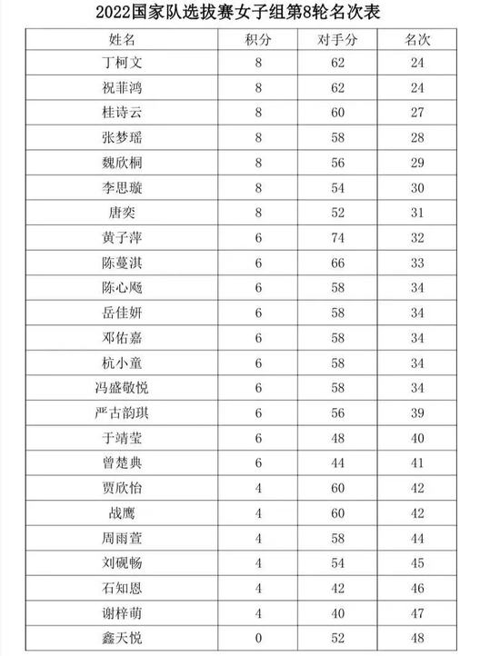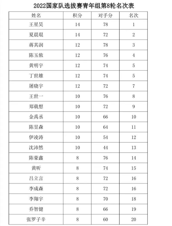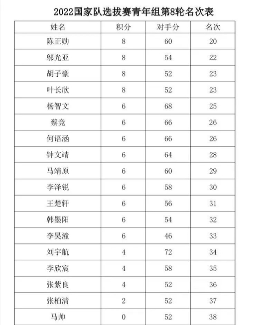 黄奕中:应该说他们竞争很激烈,还要看第7轮决定名次。最后人选需要看名次确定,还有些优秀的“10后”棋手,一直在关注他们,可能最后会选一些年纪比较小的“10后”棋手。