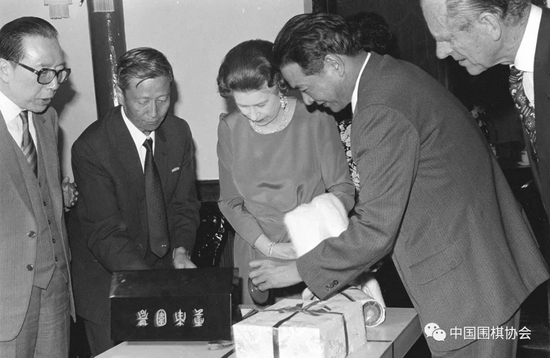 1986年10月17日,云南省省长和志强代表省政府向英国女王伊丽莎白二世赠送云南围棋