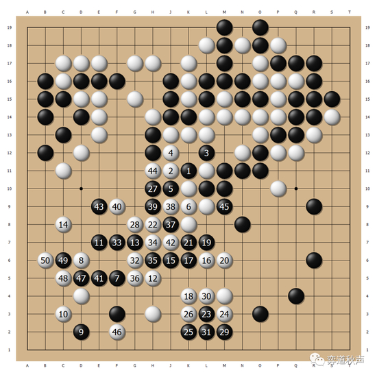 白46连回,黑棋抢到47位,右边白棋生死不明。