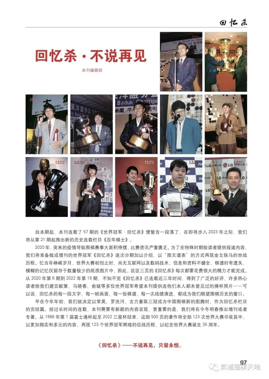 回忆杀的每一段文字、每一帧画面、每一张棋谱、每一次战绩演进,都成为我们眺望围棋历史的窗口。