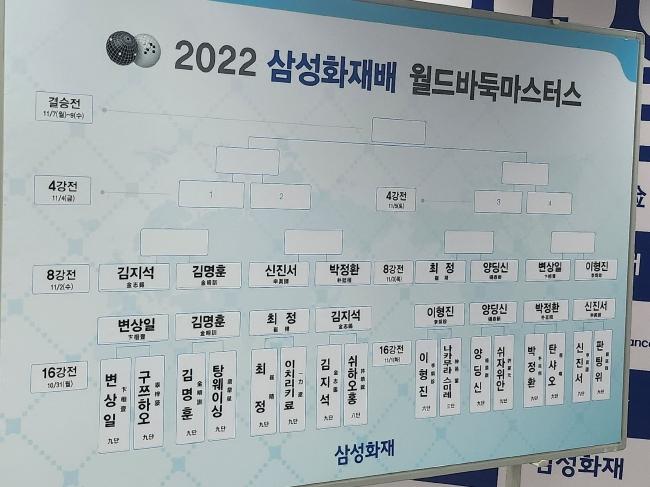 8强由1位中国棋手和7位韩国棋手组成,赛后马上进行了抽签,对阵如下。
