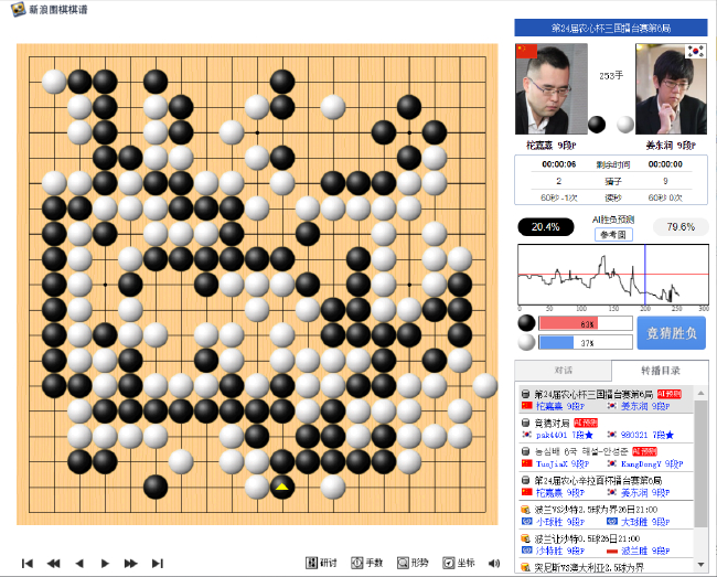 11月26日,第24届农心辛拉面杯世界围棋团体赛第6局开战,中国柁嘉熹攻擂挑战韩国姜东润,在一盘复杂度爆表的攻杀局中,双方四劫循环无胜负,今晚20时进行重赛。