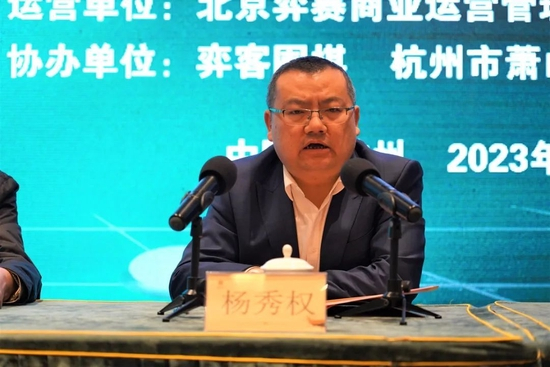 杨秀权在致辞中表示:自古以来“琴棋书画、诗酒花茶”共称八雅。棋与酒在中国历史文化发展长河里扮演着非常重要的角色。“棋罢不知人世换,酒阑无奈客思家”,是说在下棋的时候物我两忘的境界,也是说推杯换盏之后思念家乡的温馨。围棋是中华国粹,蕴含着中华文化的丰富内涵,承载着中华传统文化哲学思想。汉酱酒是以“传承的力量”延续古法酿造,是茅台酒股份公司倾力打造的核心产品。为了将中国的“棋酒文化”深度融合、发扬光大,自2018年来,贵州茅台与中国围棋协会联合打造了“汉酱杯”全国业余围棋大赛。在中国围棋协会的关心和指导下,经过连续五年的打造,“汉酱杯”全国业余围棋大赛已经成长为全国顶级业余围棋赛事之一,充分实现了棋与酒的融合。我想,这就是传承的力量。今天迎来第五届“汉酱杯”全国业余围棋大赛的收官之战,我祝愿各位棋手赛出风格,赛出水平,赛出友谊,取得优异的成绩!预祝本次围棋大赛圆满成功!