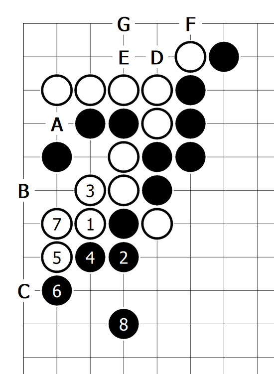 黑6还有B位顶,白C位长,再9位虎的下法。