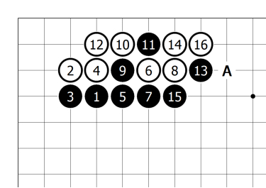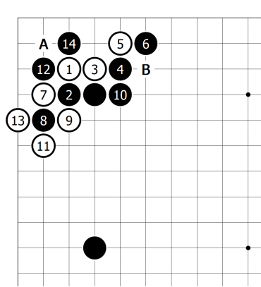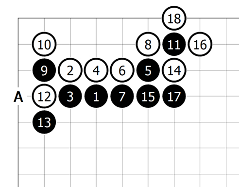 如图也是实战中出现过的变化,通常走到这里就脱先了,A后面再走。