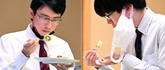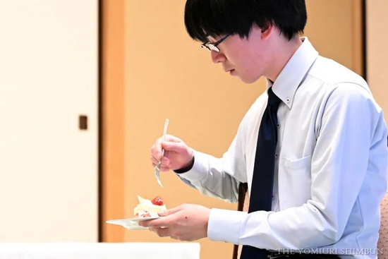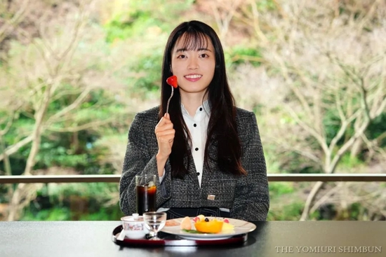 人气女棋手星合志保在镜头前“试吃”。