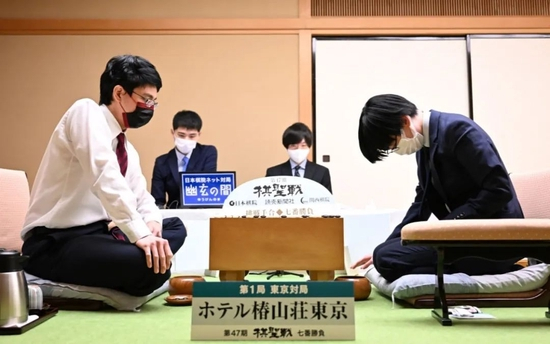 1月12日两位棋手相对鞠躬,掀开了1至3月一力辽与芝野虎丸棋圣战、俊英战累计十番棋血战的序幕。