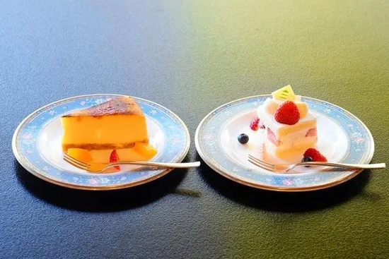 下午的点心,一力辽点了满是草莓的“草莓蛋糕”,芝野虎丸点了“芝士蛋糕”