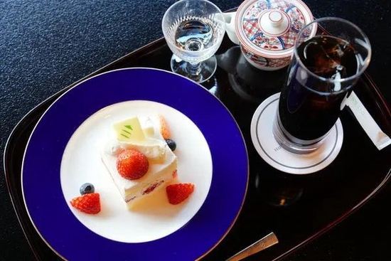 七番棋第一顿点心,一力辽点了橙汁,芝野虎丸点了草莓蛋糕和冰咖啡