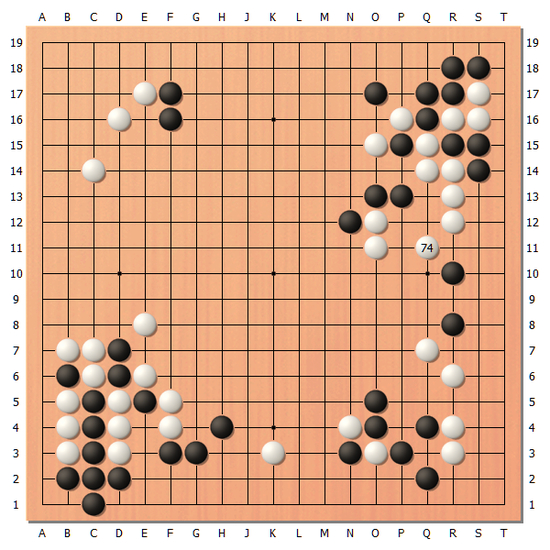 芝野虎丸的黑73(A位)将黑棋1子拉出,然后进入了午休。这个时候需要考验一力辽的应对手段。