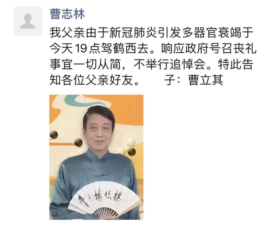 著名围棋评论家、前国手曹志林八段因新冠肺炎引发多器官衰竭,于2023年1月12日晚19时逝世,享年76岁。