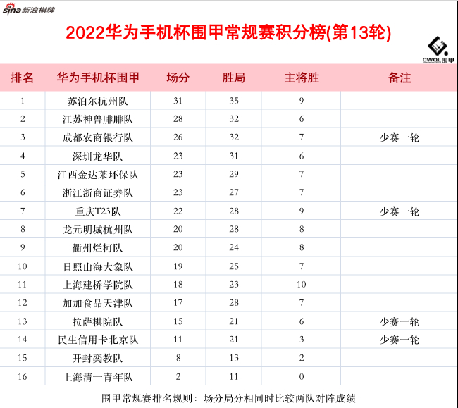 2月5日,2022华为手机杯围棋甲级联赛最后一场补赛将继续在成都进行;成都农商银行2-2主将胜重庆T23队、民生信用卡北京队1-3拉萨棋院。