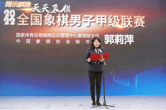 郭莉萍在致辞中表示,象棋是中华优秀传统文化的代表,象甲联赛是中国象棋协会核心品牌赛事,创办于2003年,至今已经连续举办了二十年。特别是近十年,象甲与腾讯的携手让传统文化插上了科技的翅膀,不仅让棋手拥有了展现顶级棋艺的更加广阔的舞台,还为联赛提供了最前沿的转播技术,棋谱的实时化、可视化、数字化大大提升了观赛体验,让专业比赛真正与棋迷产生了联系,拉近了距离,成为了最受爱好者关注的顶级职业联赛之一。未来,中国象棋协会将继续践行“以人民为中心”的服务理念,不断满足新时代群众对体育事业发展的新需求,为体育强国建设发挥象棋项目的积极作用。