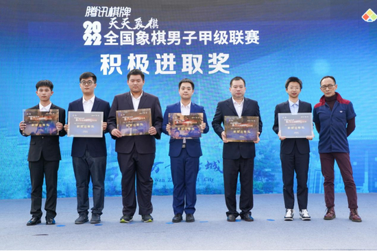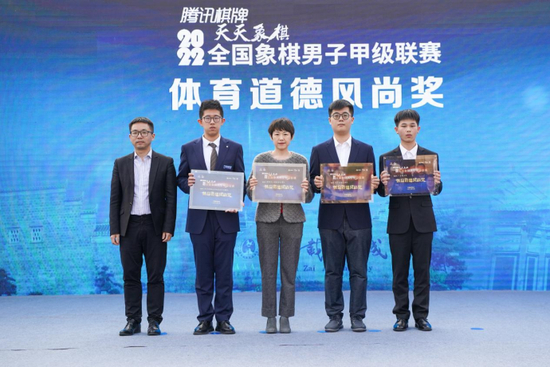 中国象棋协会职业联赛委员会主任刘赟 为获得积极进取奖的代表队颁奖
